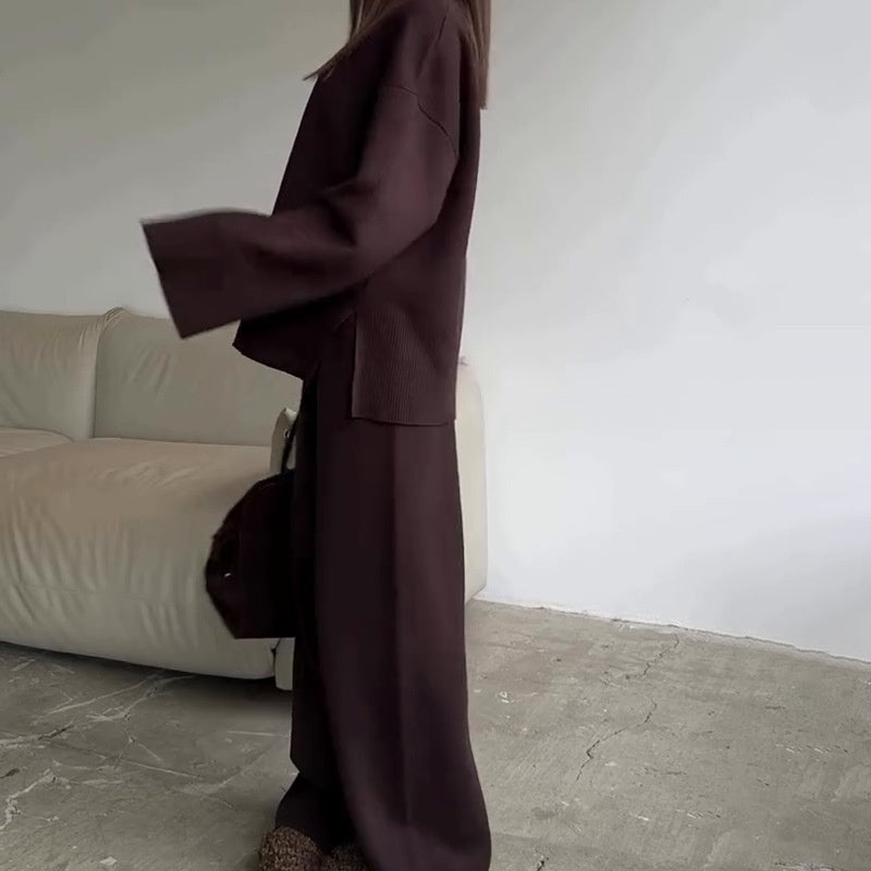2-teiliges Set aus Damenpullover und Hose mit weitem Bein
